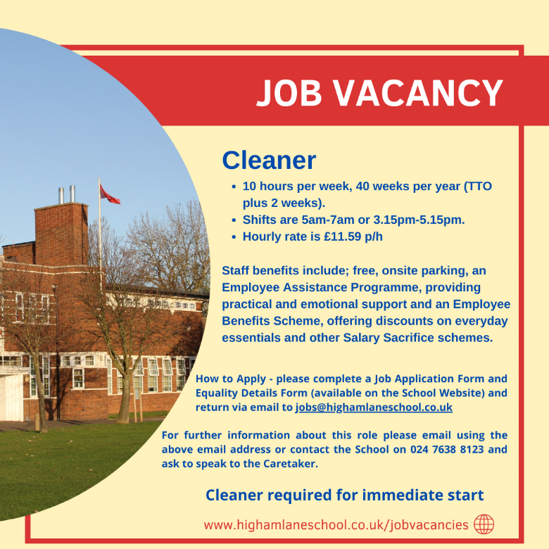Higham Lane School is committed to safeguarding and promoting the welfare of children and young people and expects all staff to share this commitment. All successful applicants will be subject to an enhanced DBS check and will also be taken through the School's vetting procedure.